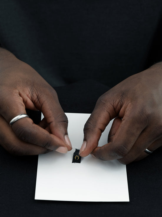 製品内側にあります「Q」タグをハサミ等で切り取ります。